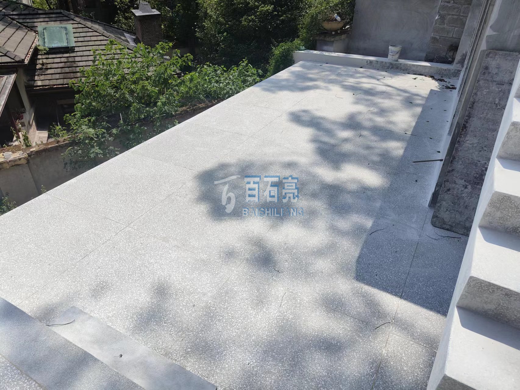 - 渝北壹江郡花園水磨石 這是一款由白色水泥加白色骨料 均勻混合而成的水磨石 用在花園地面 光滑又平整 清新自然 攤鋪 將混合均勻的水磨石材料攤鋪在地面上厚度1.5-2公分。 使用靠尺...