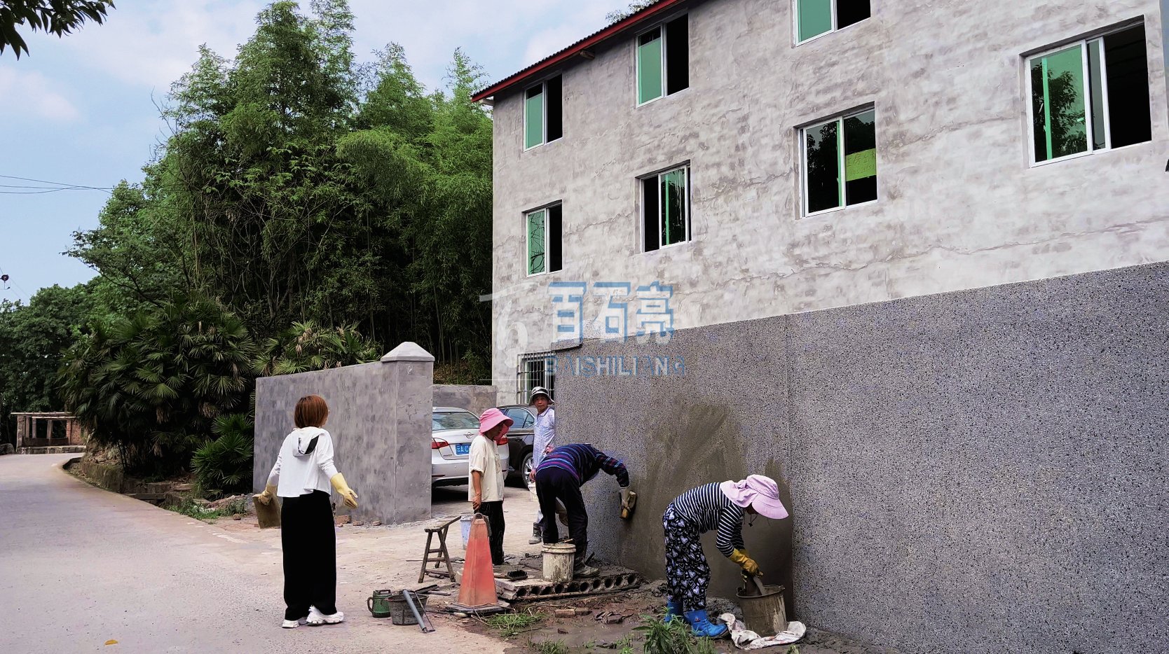 做好基礎后,就開始均勻的攤鋪上水洗石,墻面的水洗石操作難度很大,十分考究師傅的施工技術,對時間的把控也特別重要,攤鋪上去的水洗石,要將他收平,然后壓實,使他牢牢地貼在墻面上等待晾干。晾干以后就可以使用海綿多次進行擦洗(粗洗,精洗)直至表面無水泥、污垢即可。