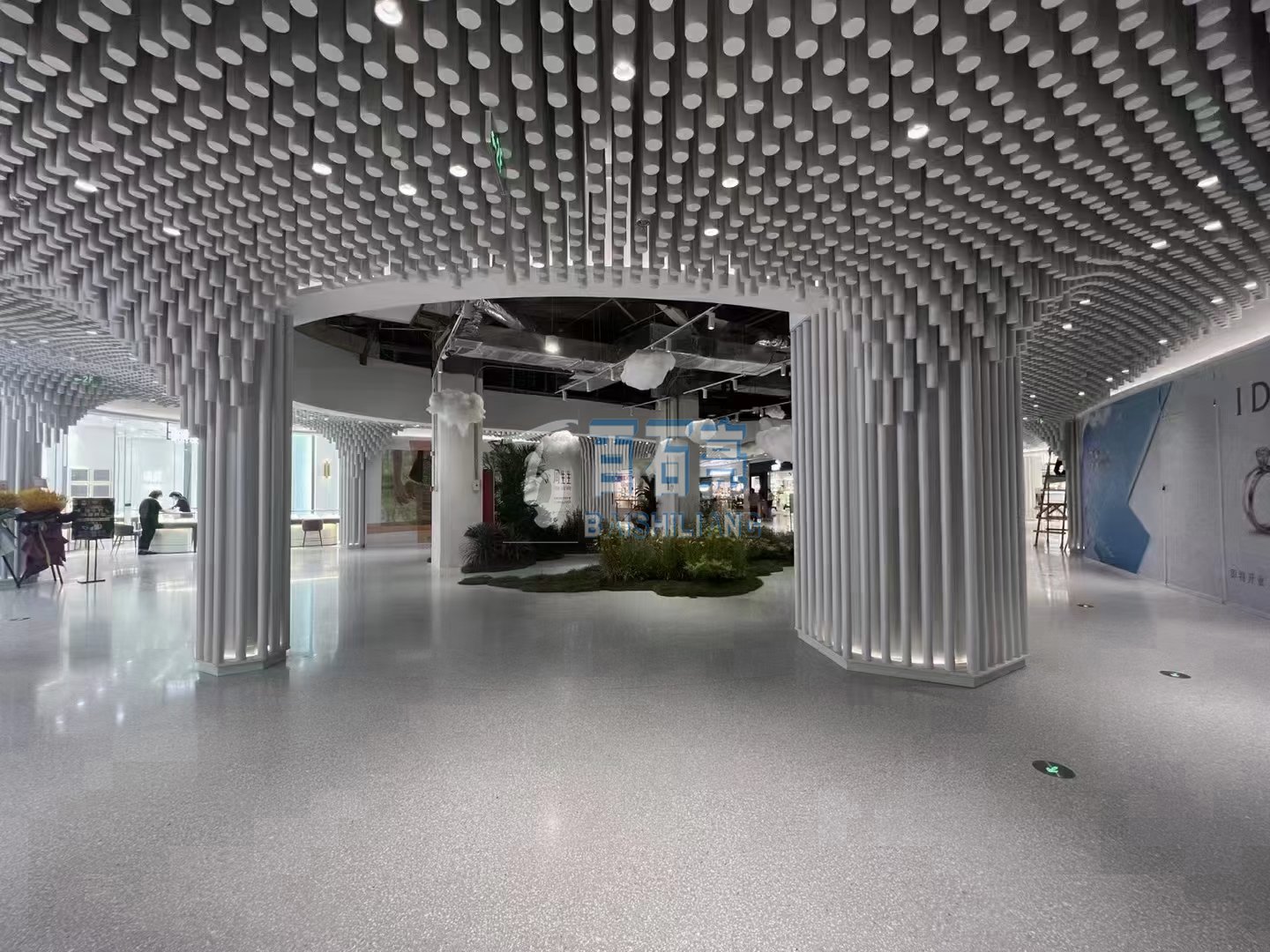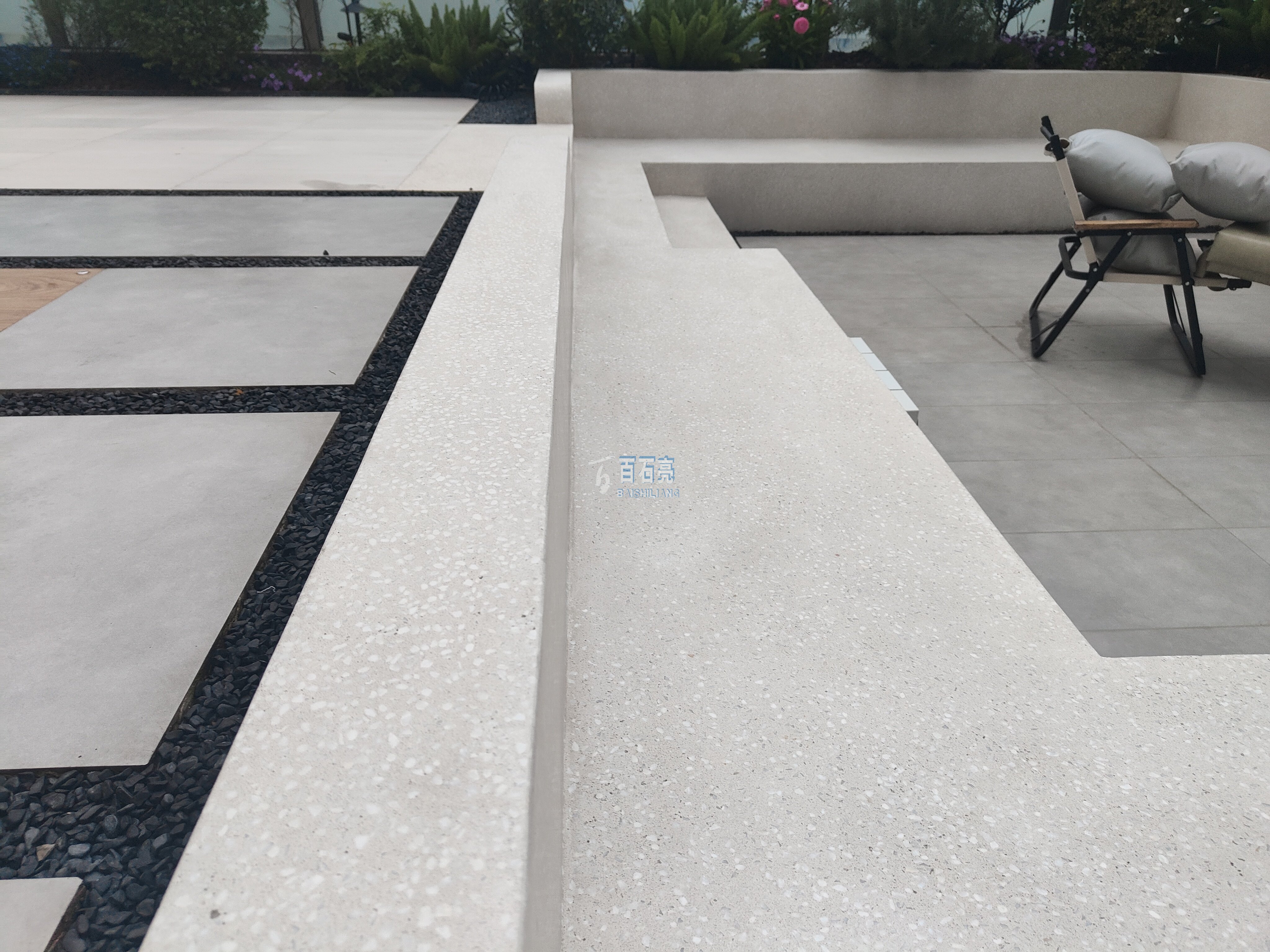 無機水磨石,因 "握砂力"非常好,不容易跳砂,并且還能添加低吸水性骨料。骨料選擇范圍寬廣。