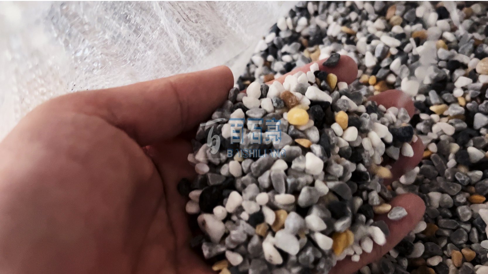 客戶選用的是我們的爆款灰色系列水洗石,主要是由3-5的黑色、灰色、白色、黃色骨料均勻配比而成??梢钥吹轿覀兊乃词橇项w顆分明,都是選用的優(yōu)質(zhì)天然鵝卵石碎。洗出來的效果也是相當(dāng)?shù)陌瓦m,給人一種低調(diào)奢華的感覺,而且耐臟,大氣。用在室內(nèi)花園不用怕不好打理,與綠植軟裝搭配特別的舒適、休閑。