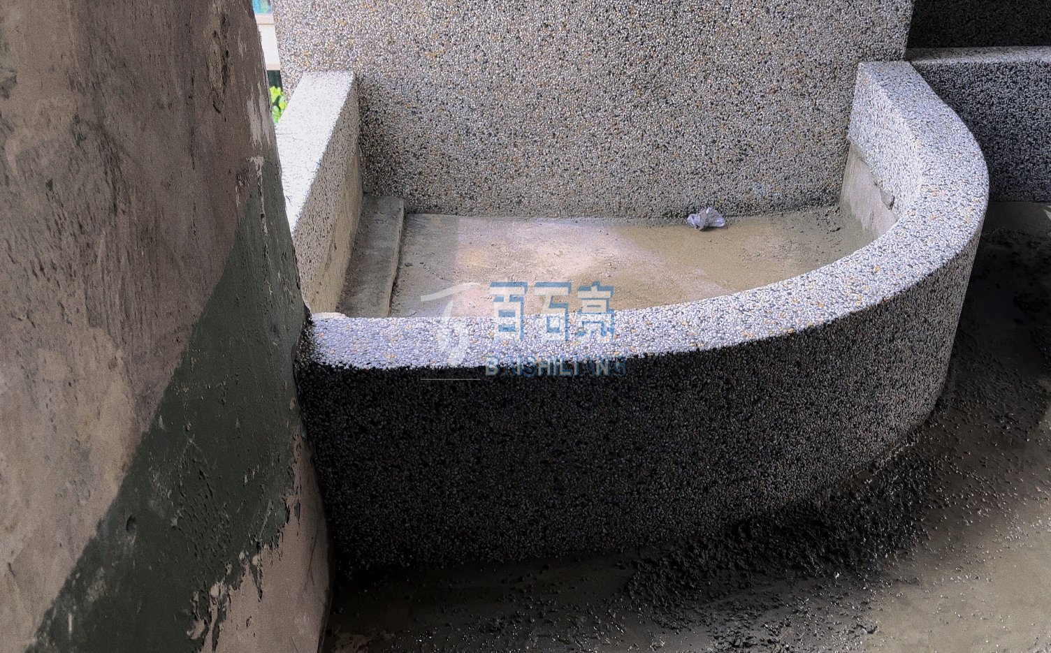三、弧形花池水洗石
