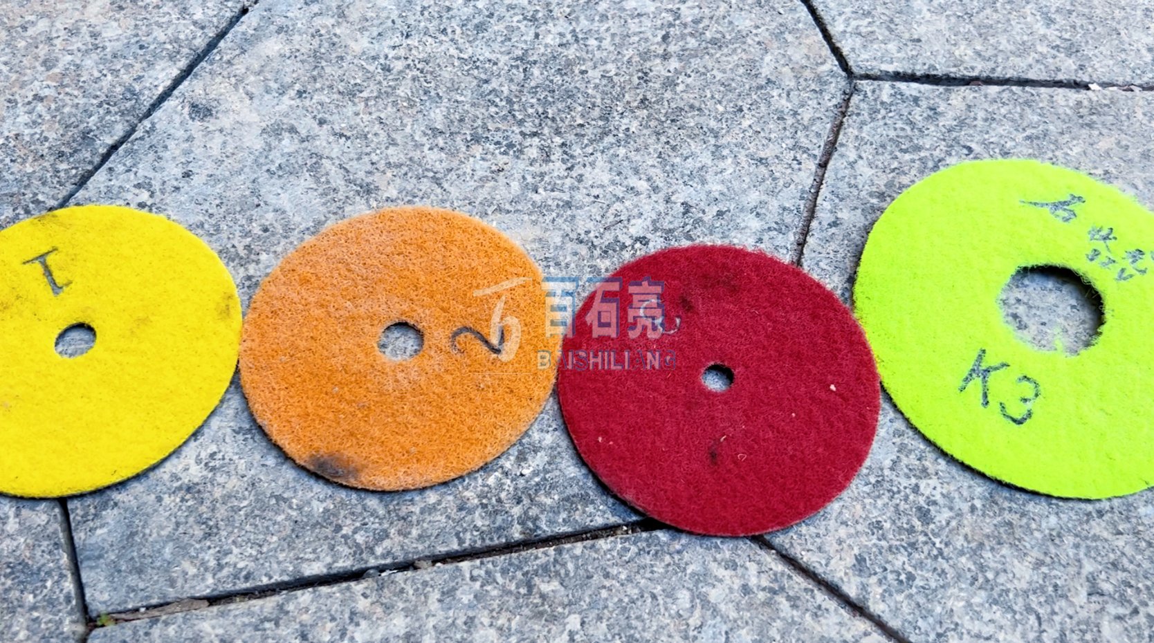 水洗石打磨分為粗磨、細(xì)磨、精磨。不同的程度的打磨使用的磨片也是不一樣的。首先用鐵磨片來(lái)進(jìn)行開(kāi)面處理,再用不同型號(hào)的樹(shù)脂磨片進(jìn)行粗磨、細(xì)磨、精磨。