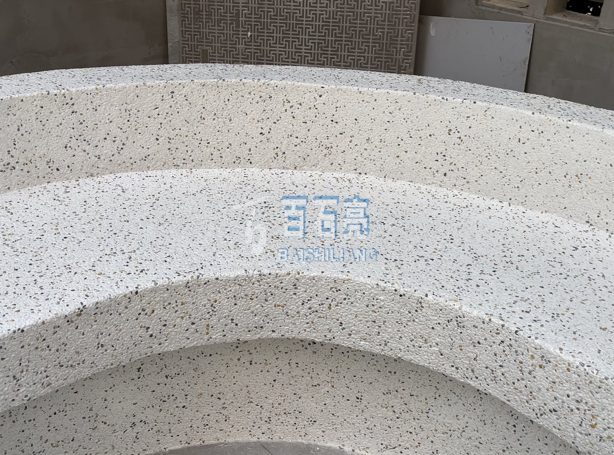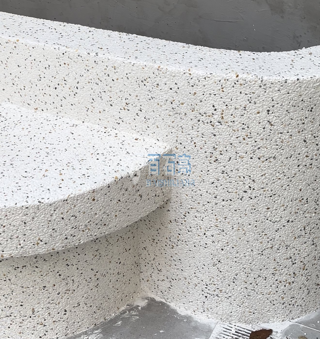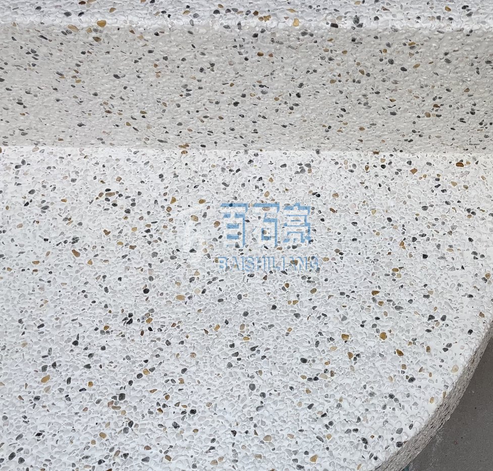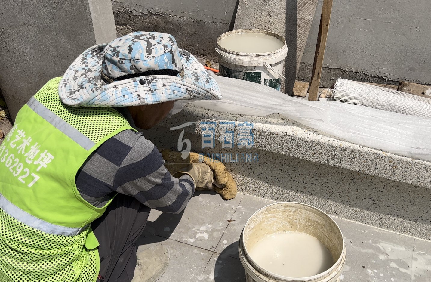 - 渝北壹江郡花園水磨石 這是一款由白色水泥加白色骨料 均勻混合而成的水磨石 用在花園地面 光滑又平整 清新自然 攤鋪 將混合均勻的水磨石材料攤鋪在地面上厚度1.5-2公分。 使用靠尺...