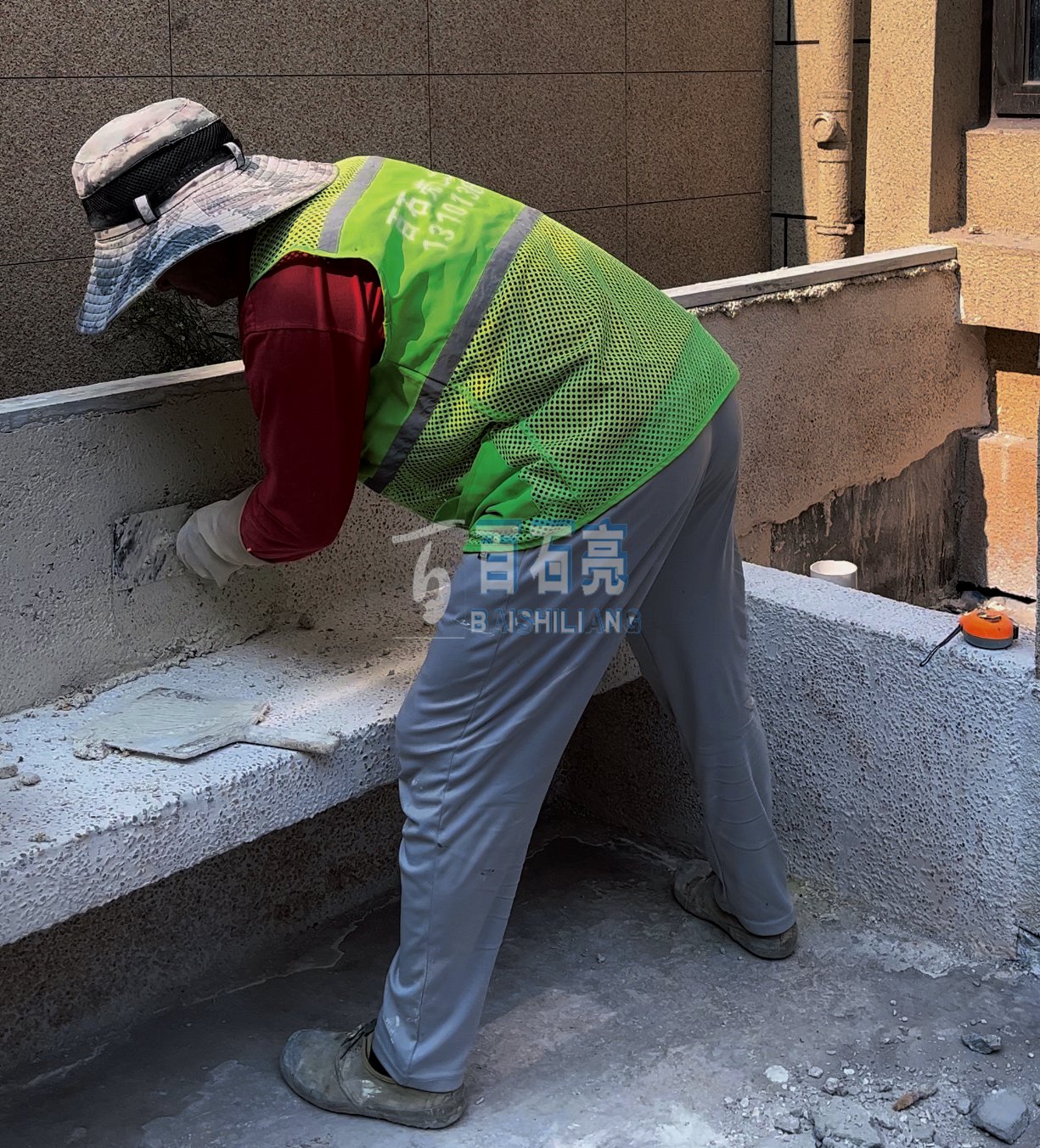 - 渝北壹江郡花園水磨石 這是一款由白色水泥加白色骨料 均勻混合而成的水磨石 用在花園地面 光滑又平整 清新自然 攤鋪 將混合均勻的水磨石材料攤鋪在地面上厚度1.5-2公分。 使用靠尺...
