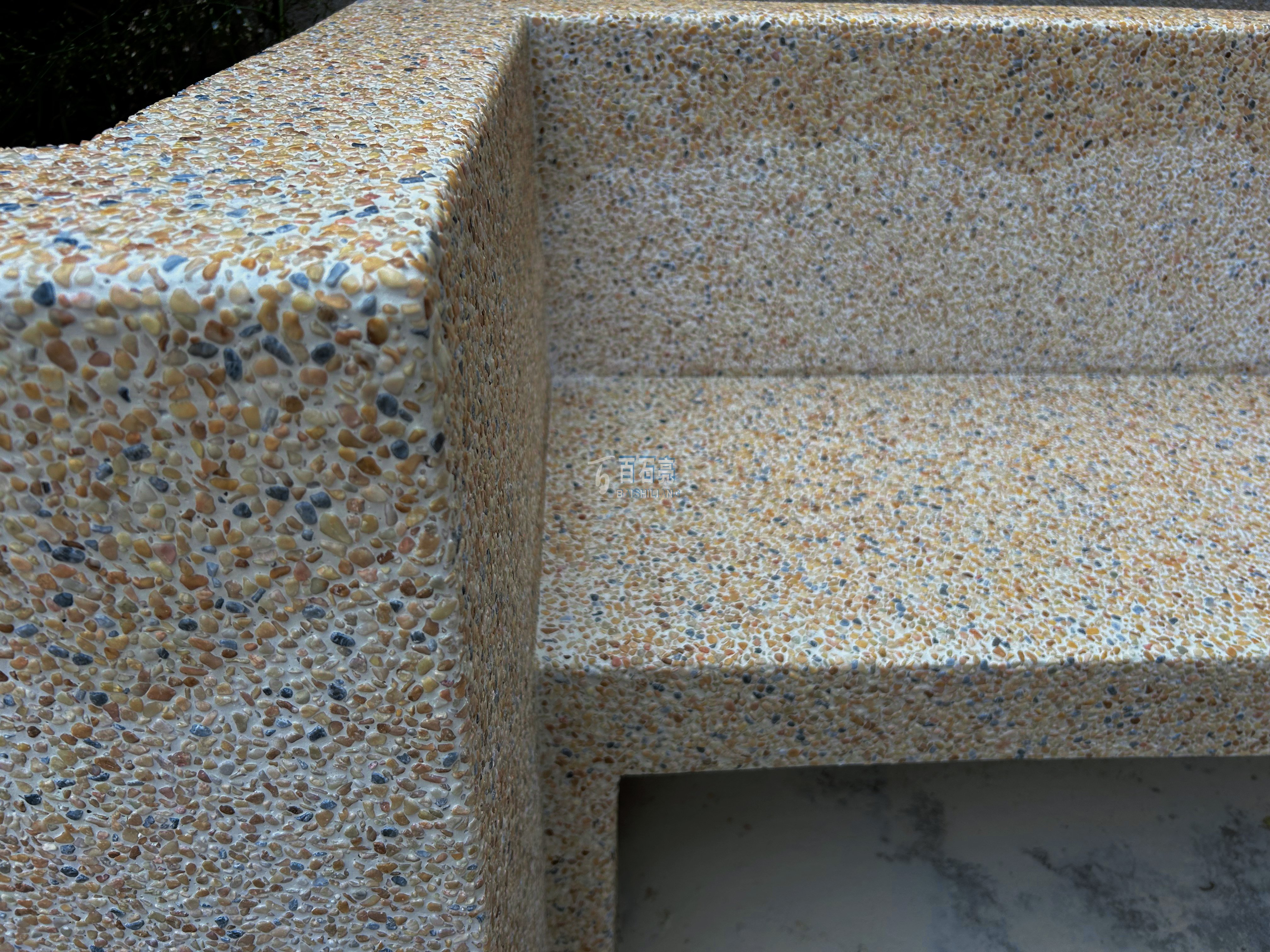 水洗石的可塑性極強(qiáng),我們可以在不同的地方使用不同的形狀和造型。像這樣的坐凳和花池是做到整體連接,幾個面無縫拼接在一起,這種設(shè)計(jì)特別好看,讓人眼前一亮。水洗石的另一個特點(diǎn)是顏色搭配上非常美觀,可以根據(jù)不同的需求進(jìn)行搭配,讓小花園更加溫馨舒適。