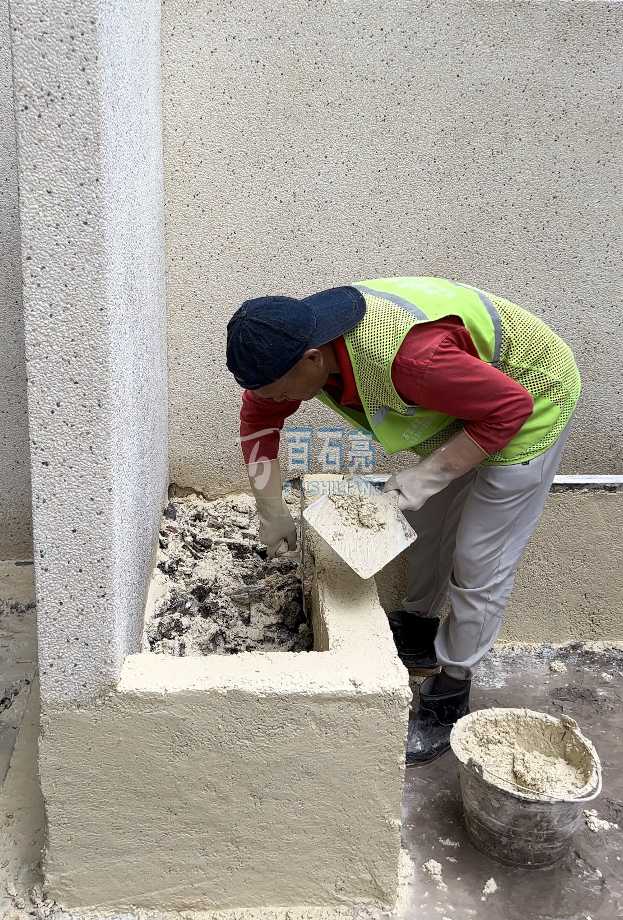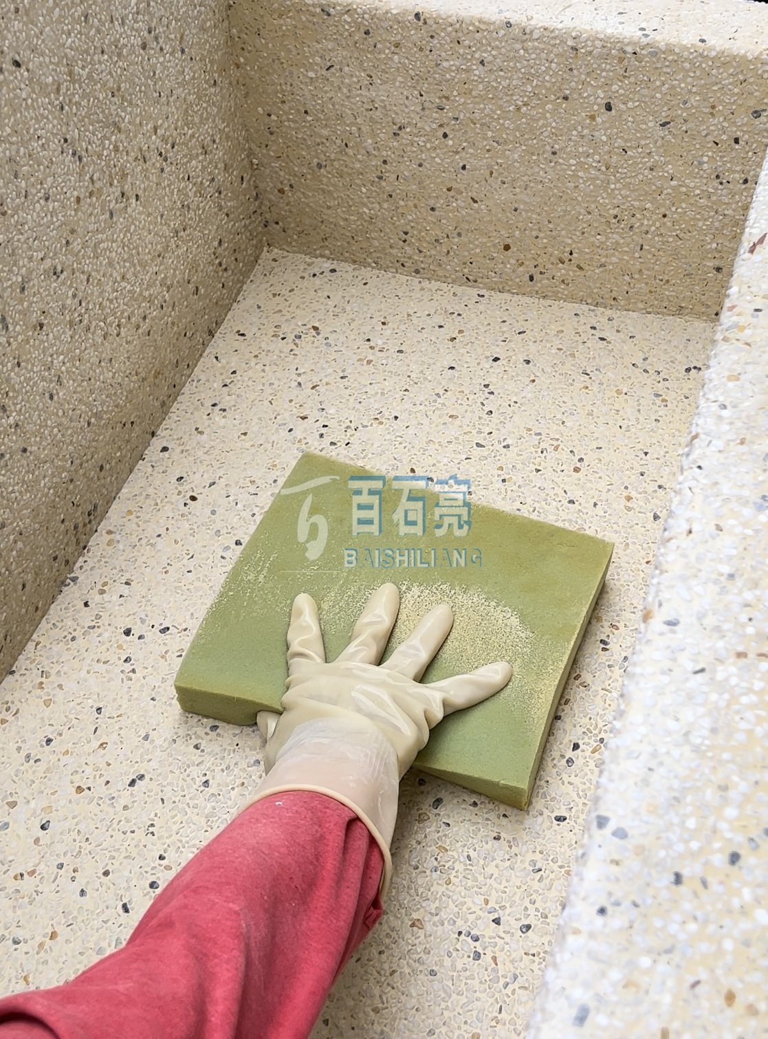 - 渝北壹江郡花園水磨石 這是一款由白色水泥加白色骨料 均勻混合而成的水磨石 用在花園地面 光滑又平整 清新自然 攤鋪 將混合均勻的水磨石材料攤鋪在地面上厚度1.5-2公分。 使用靠尺...