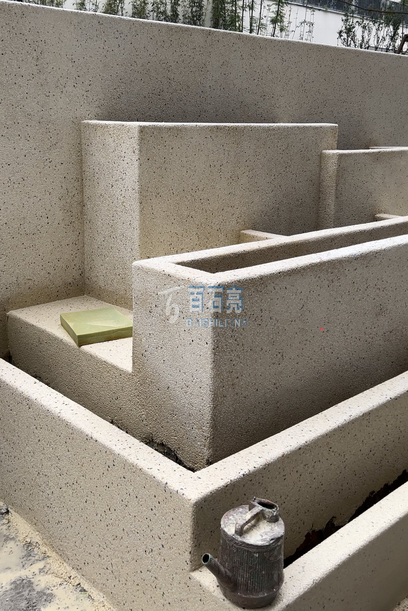 今天為大家介紹的是融創(chuàng)映湖十里花園水洗石設(shè)計,主要施工范圍是花園墻面、花池、水池。整體非常的有設(shè)計感,元素多元化。這位客戶選擇的是3-4的石子骨料,主要是白色骨料居多,然后加了少量的灰色和黃色骨料進(jìn)行點(diǎn)綴。底料是選擇了暖色調(diào)的奶白色。