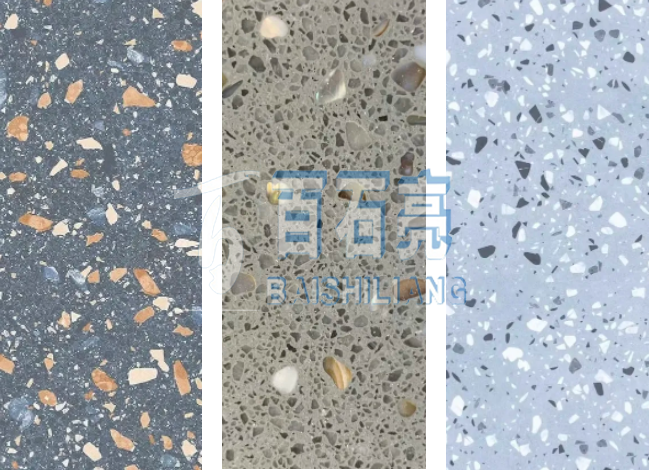 水磨石:是經(jīng)過水磨拋光處理,表面光滑、細(xì)膩,呈現(xiàn)出一種亮麗、光澤的效果。