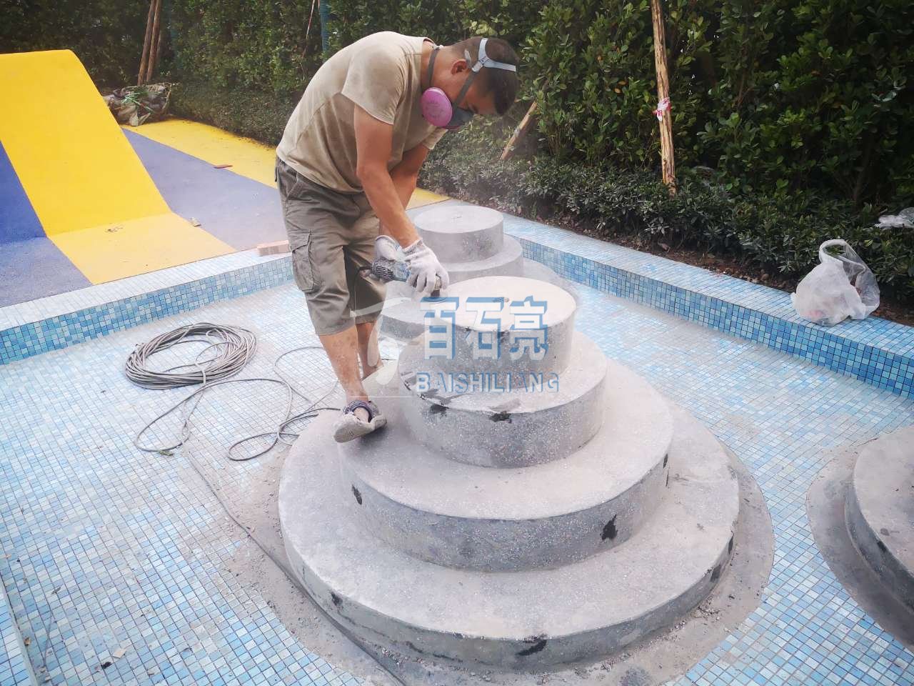 蛋糕水磨石補(bǔ)漿中…………