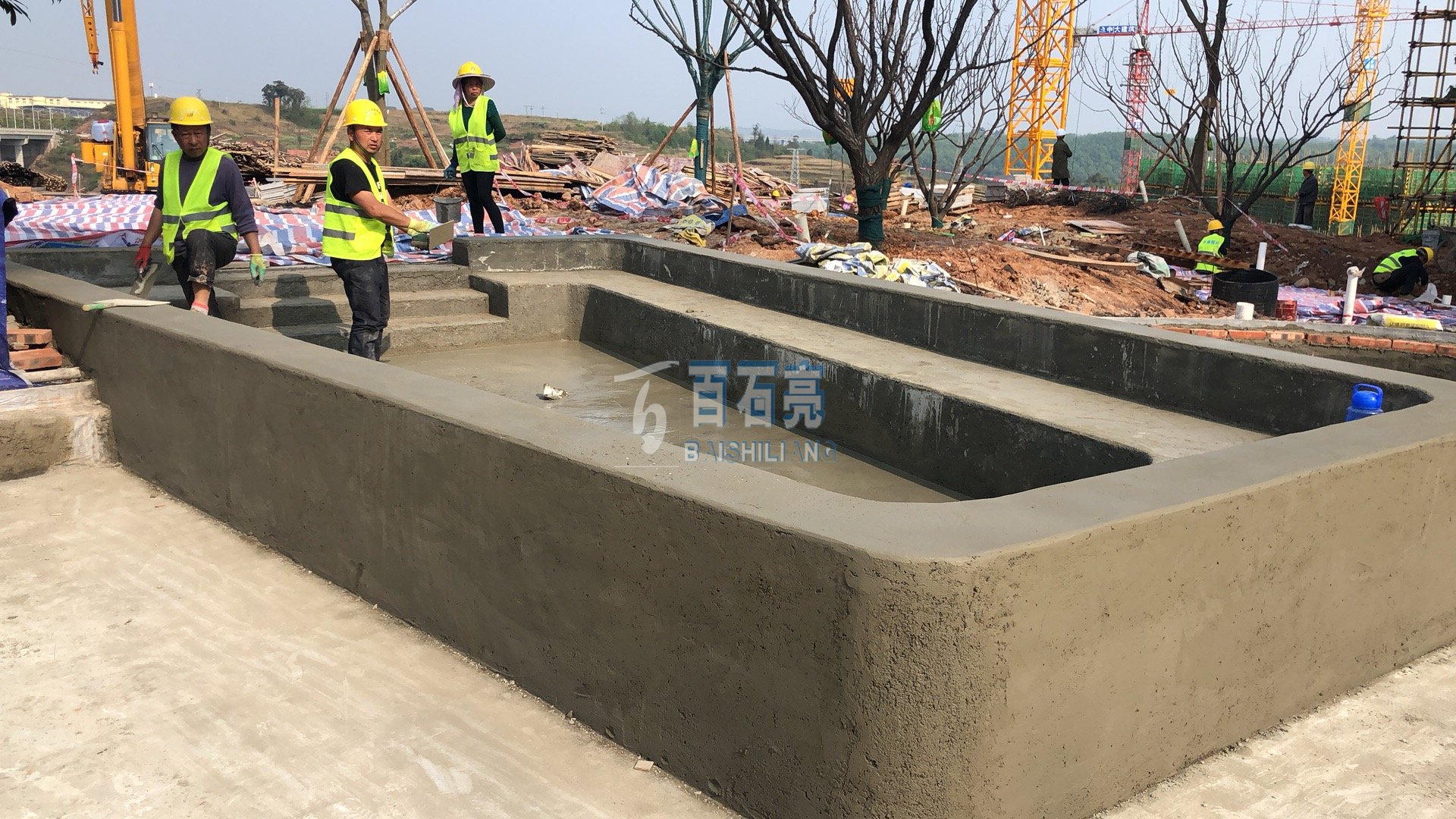 現(xiàn)澆水磨石坐凳施工花絮——潼南.貝蒙涪江郡示范區(qū)項目