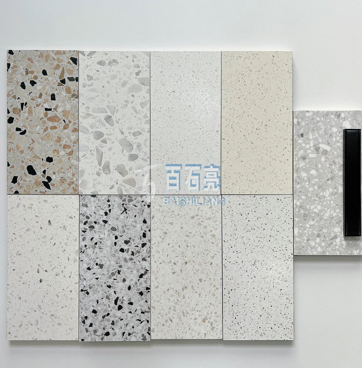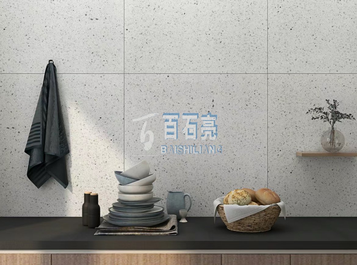 以灰色為背景色,以白色圓潤(rùn)的骨料做點(diǎn)綴