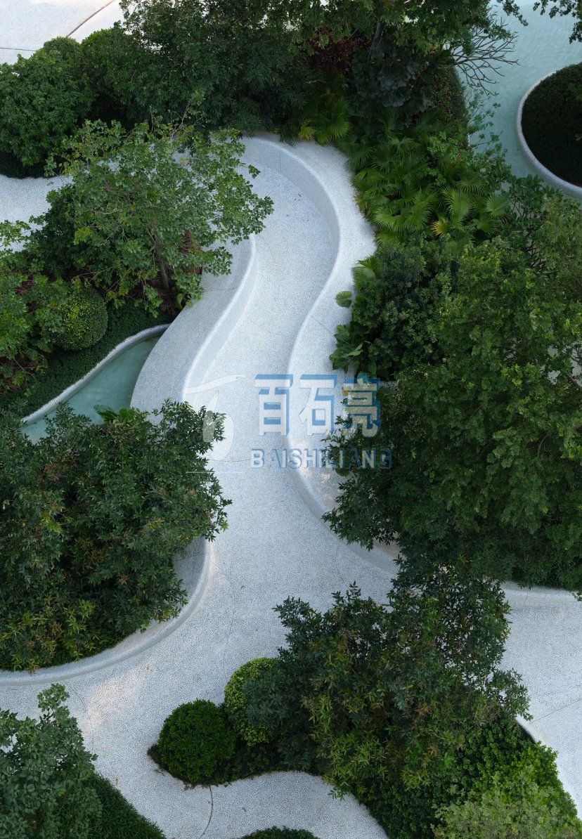 可塑性超強的水磨石也可用于園林景觀設(shè)計和造型獨特的各種異型設(shè)計。